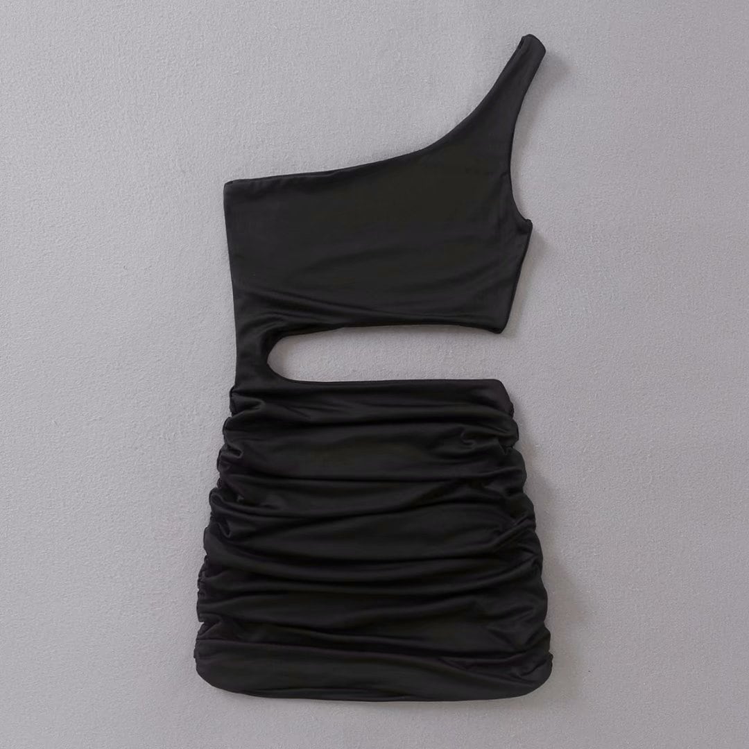 セクシーボディコン ワンショルダーノースリーブカットアウトシャーリングミニクラブドレス