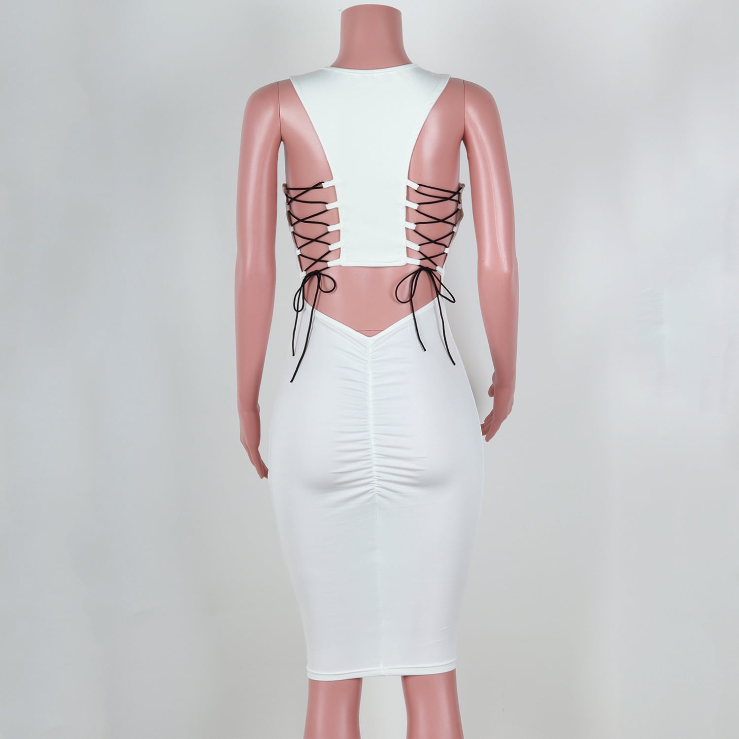 3カラー後ろ姿美人になれるセクシーノースリーブキャバワンピース・ボディコンドレス