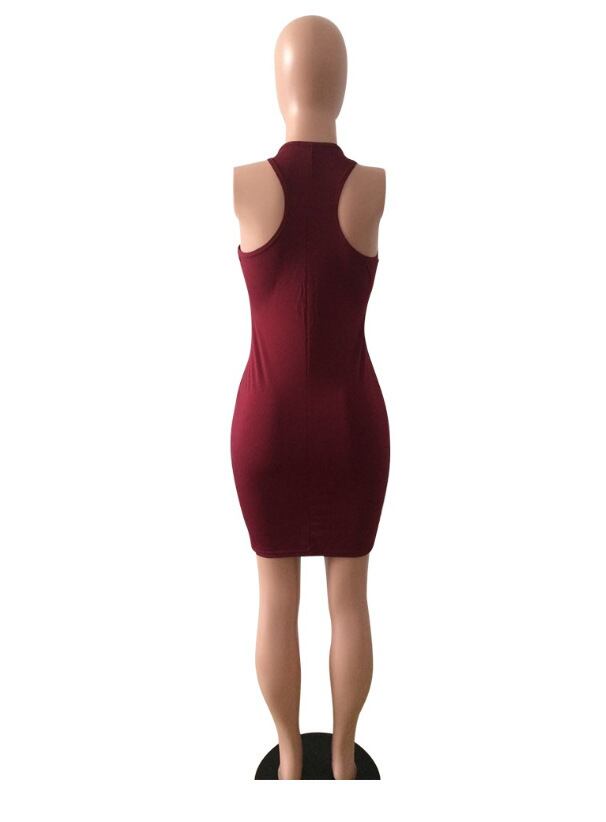3カラー胸開きセクシーノースリーブボディコンクラブパーティーミニドレス