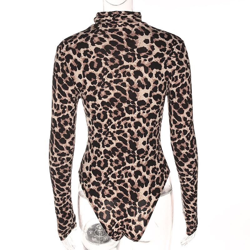 ヒョウ柄セクシーボディコンタートルネックジャンプスーツボディスーツ
