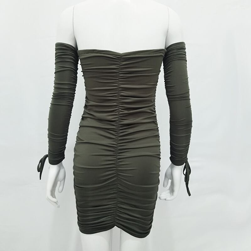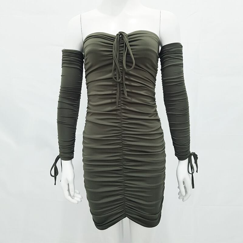 6カラーセクシーオフショルダー長袖スリムボディコンパーティードレス