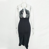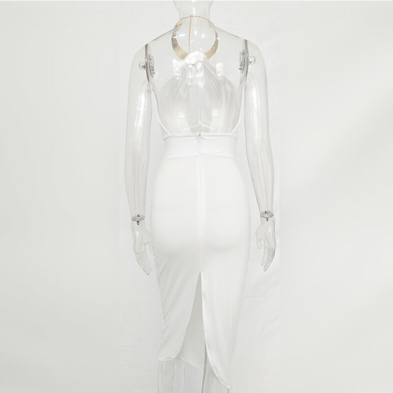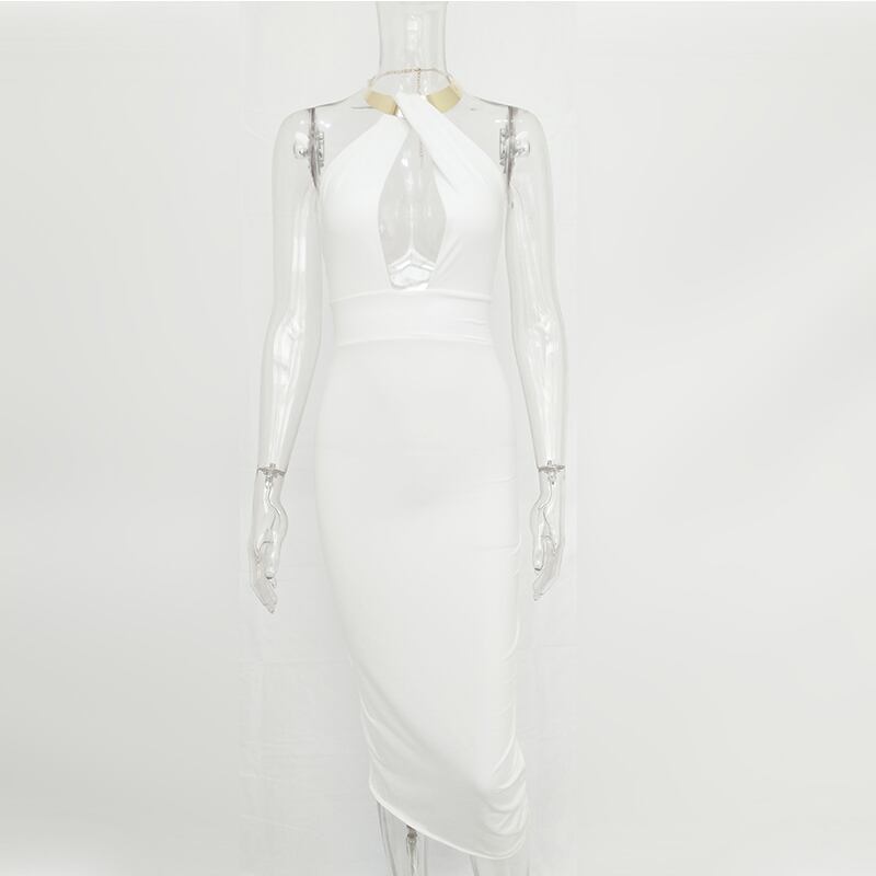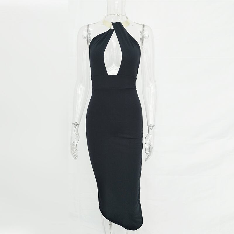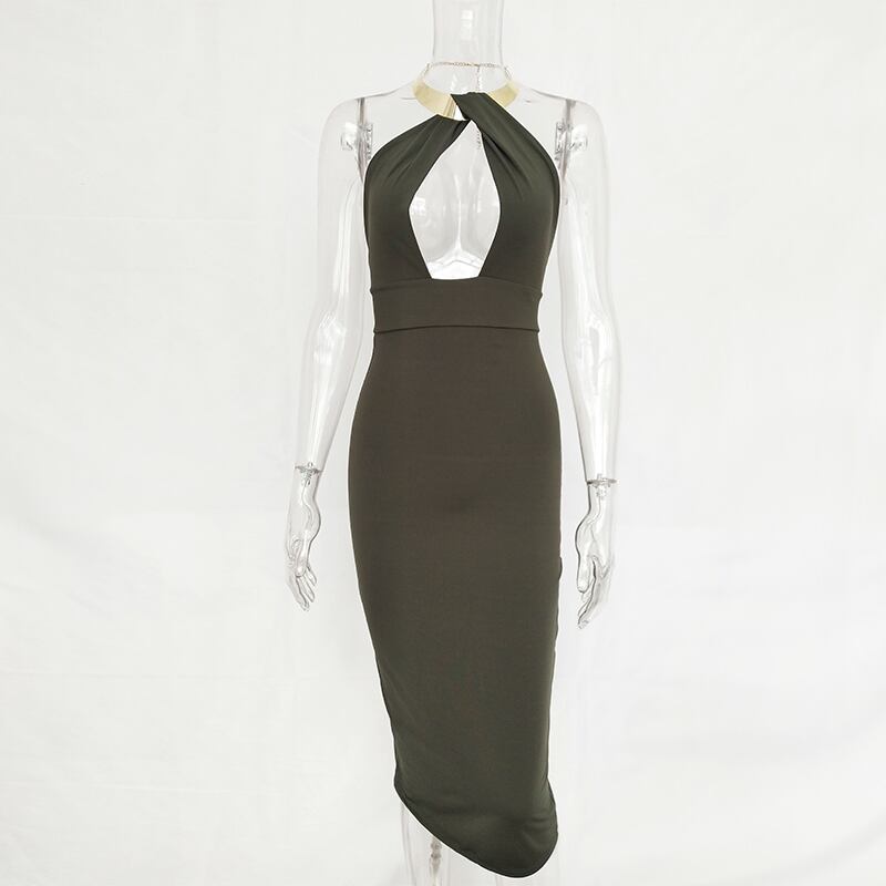 5カラーパーティーボディコン胸空きオフショルダーチョーカーロングペンシルドレス