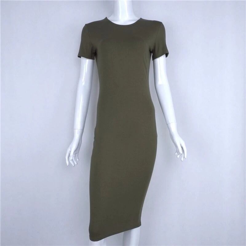 3カラー半袖スリムボディコンワンピースチュニッククルーネックカジュアルドレス