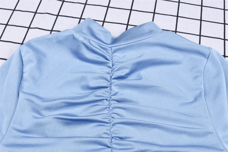 2カラーセクシーシャーリング長袖ハイネックミニドレス ボディコンハイファッションドレス