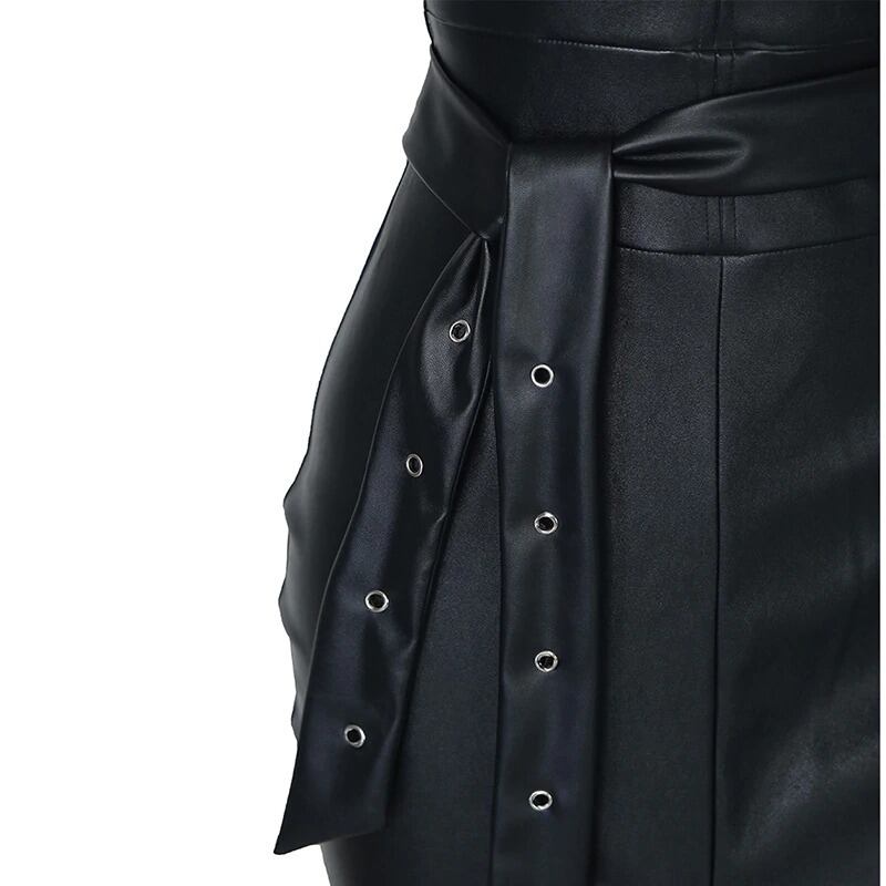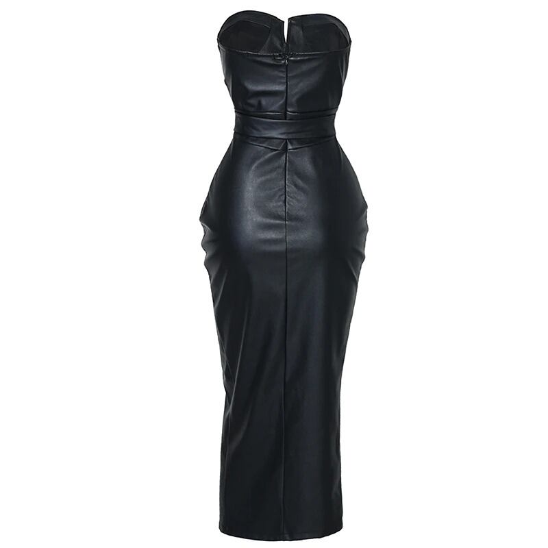 スプリット黒タイトパーティーセクシーナイトクラブ レザーボディコンドレス