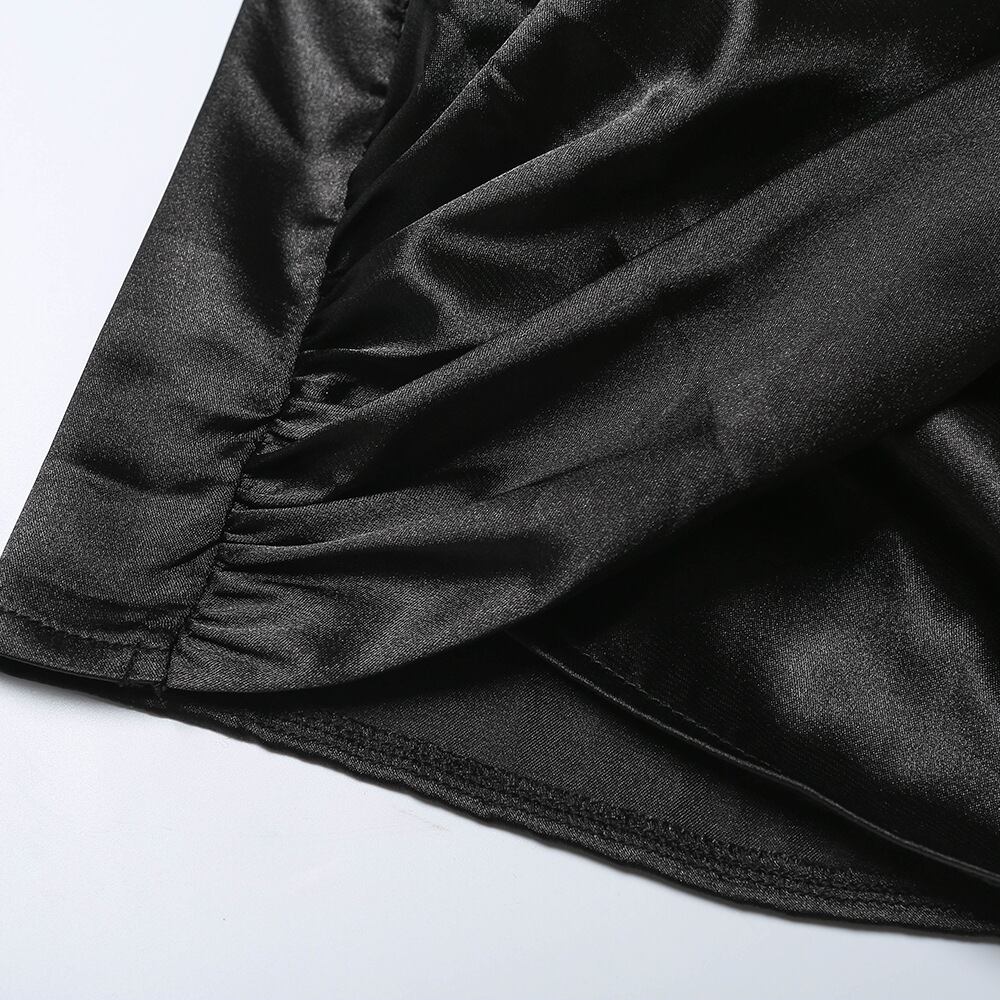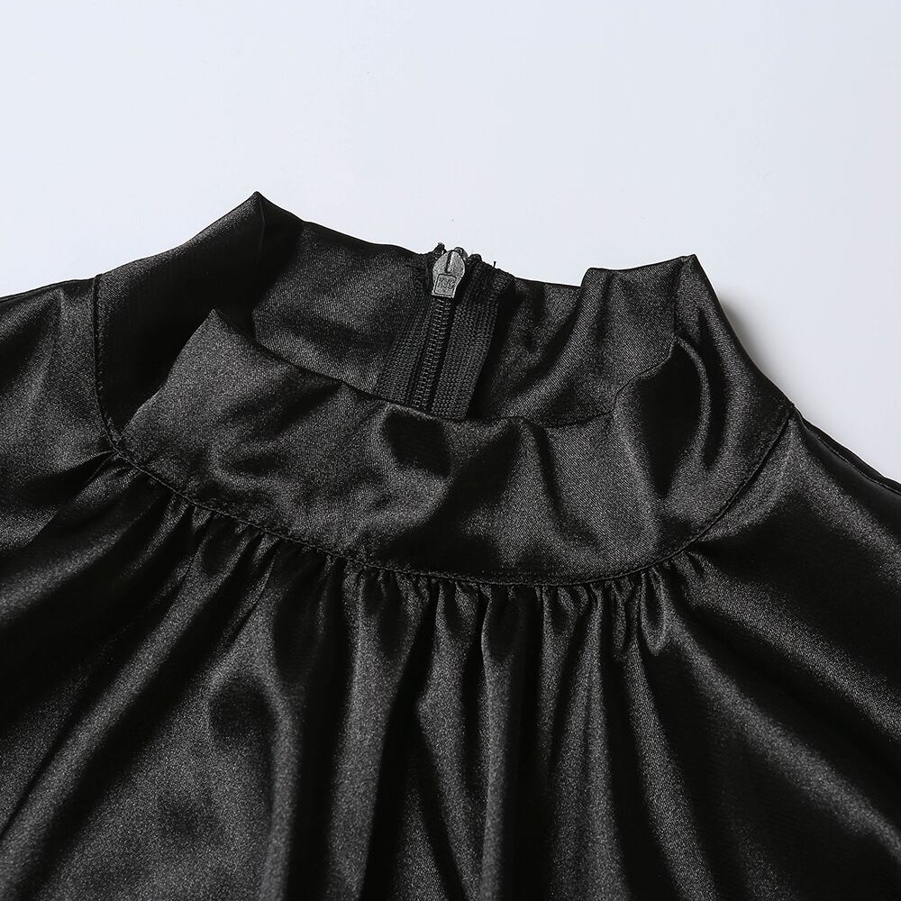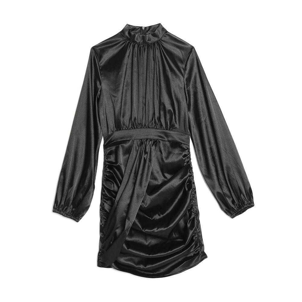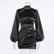 ショートパーティー パフスリーブシングルプリーツシース 黒 ナイトクラブ 長袖 ボディコンミニドレス