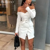 セクシー オフホワイトショルダーベルト ブレザー パーティーロングスリーブ ボディコンエレガント ショートドレス