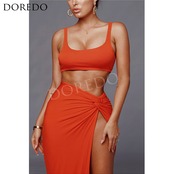 2color クロップトップ ツイスト スプリット ロングスカート ツーピース サマードレス
